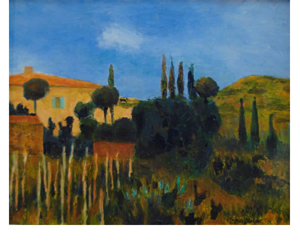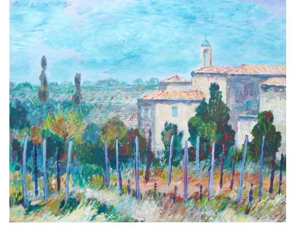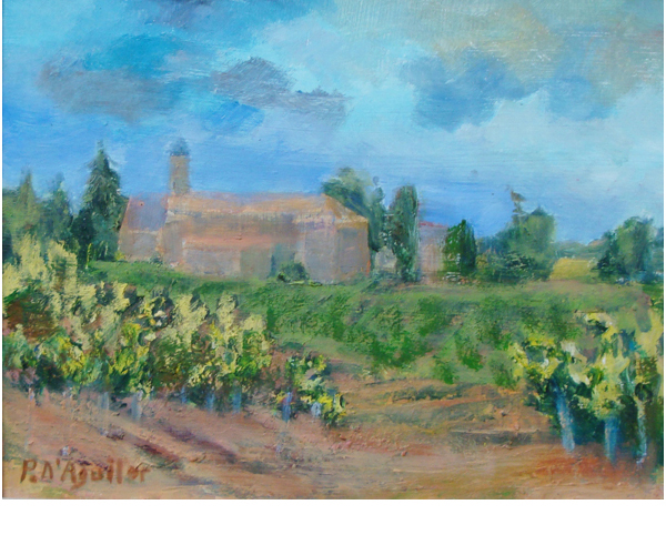 View of the Maison de Maitre with Vines France 1994 Oil on Board 12” x 16”