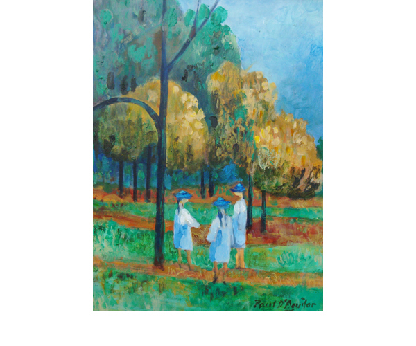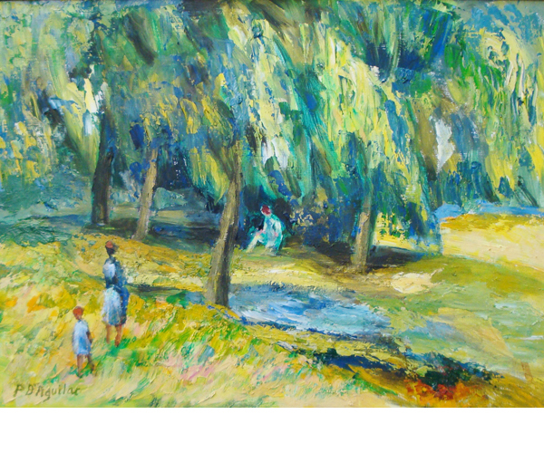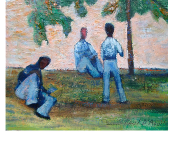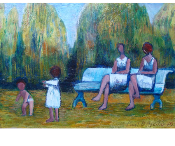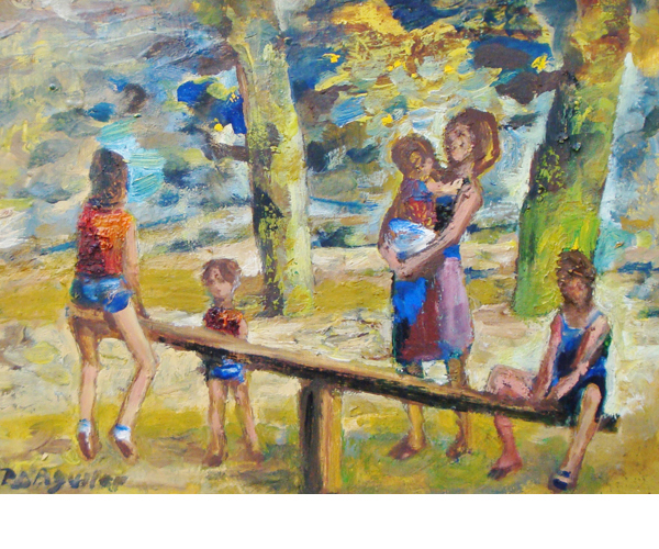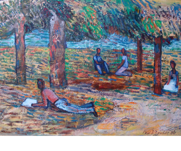 Sitting Under the Trees 1986 Oil on Board 20” x 29”