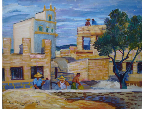 Two Workmen Ibiza 1949 Oil on Canvas 16” x 20”