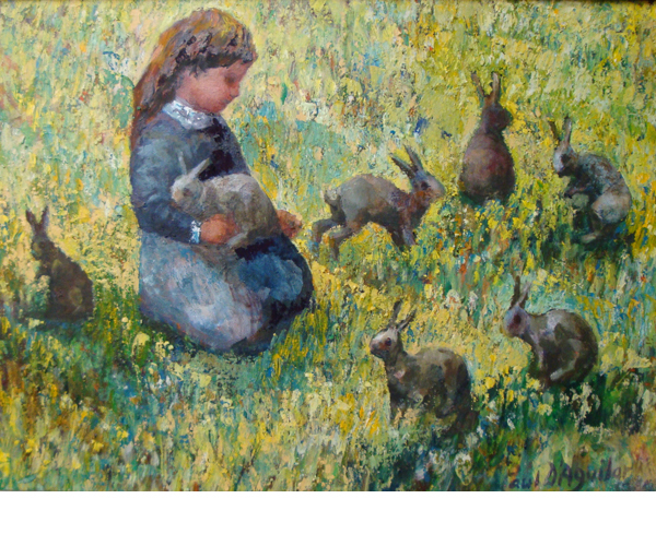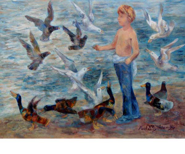 Girl Feeding a Swan Oil on Board 18” x 24”