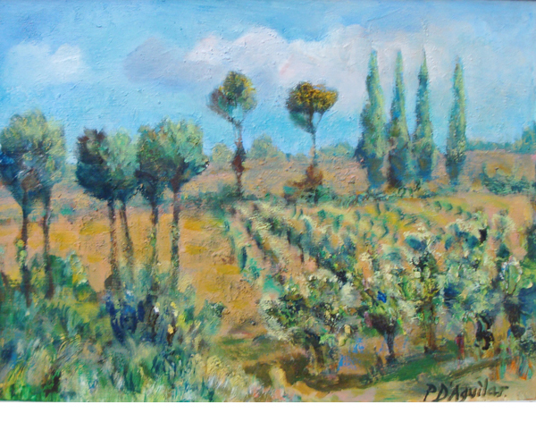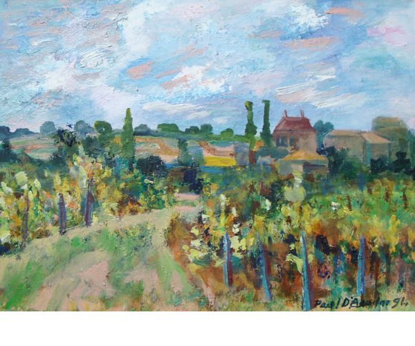 Landscape with Vines Gironde France Oil on Board 20” x 23.5”