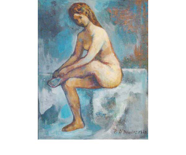 Nude Crossing Her Leg 1960 Oil on Canvas 20” x 16”
