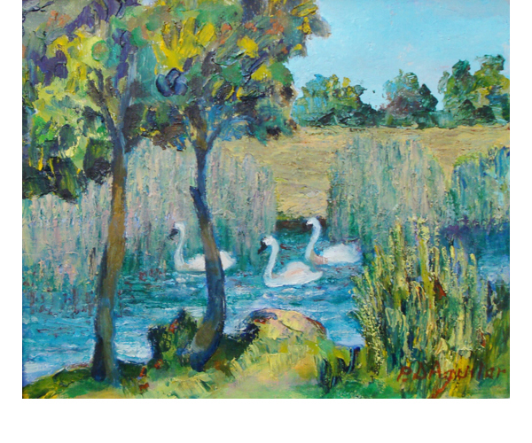 The Swan on the River Boine Ireland Oil on Board 10” x 12”