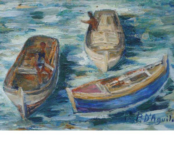 Three Boats in Heraklion Harbour Crete Oil on Board 8” x 12”