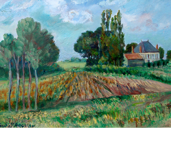 View Across the Fields Chateau Larat Gironde France Oil on Board 12” x 16”